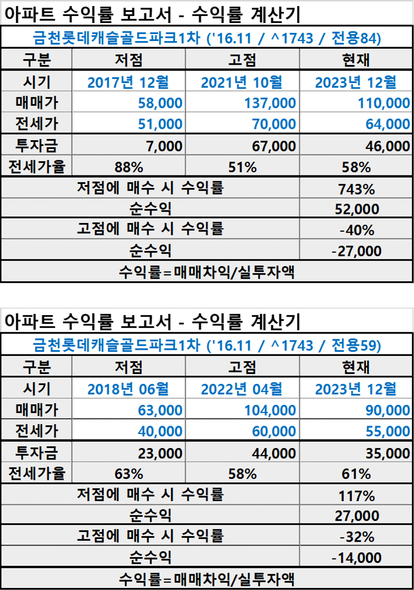 APT수익률보고서 | 금천구 독산동 금천롯데캐슬골드파크1차