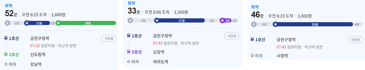 * 강남역 52분 / 여의도역 33분 / 시청역 46분